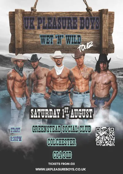 Get ready to ride into the wildest night of your life with the UK Pleasure Boys' Wet & Wild Western Style Strip Show - where cowboy boots meet bare chests and the saloon doors swing open to pure, unfiltered entertainment!