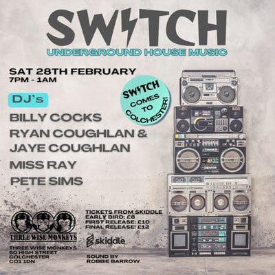Following on from 5 successful events in Ipswich where Switch has brought the best Soulful and Deep House DJ's to the East, we now branch out Colchester, with the same ethos of no compromise on quality of DJ's, music and sound.