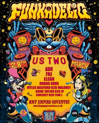 Something weird and wonderful is returning to Coventry. Funkadelic invites you to step into a world where nothing is quite what it seems. Get ready for a psychedelic night of bass-heavy beats, surreal characters, and immersive performances, all set inside a fully transformed Wonderland at hmv Empire. With aerial performers, interactive characters, themed decor, and loads of unexpected twists.