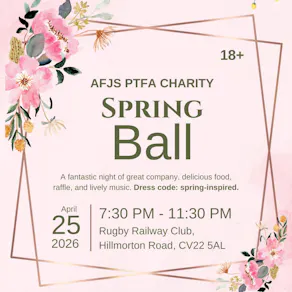 Join us for the PTA Charity Spring Ball - a fun, 18+ night out supporting our school community. Come dressed to impress (or comfortably stylish) and bring your friends for an evening of drinks, delicious food, great music, and a chance to win in our raffle.