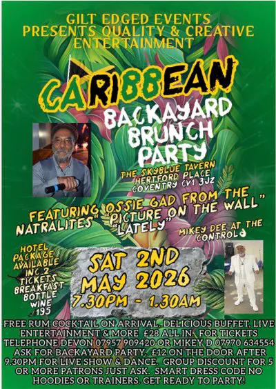 A GILT EDGED EVENT. Caribbean themed evening brunch where there will be a range ofJamaican food served buffet style with full entertainment including live PA's fun and games.
