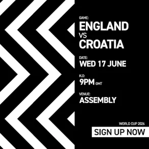 ![ENGLAND VS CROATIA Wed 17/06/26 FANZONE [SIGN UP NOW]](https://skiddle.imgix.net/d/f/8/2185750_ec48648b_england-vs-croatia-wednesday-17-06-26_1024.jpg?auto=format%2Ccompress&width=auto&height=292)