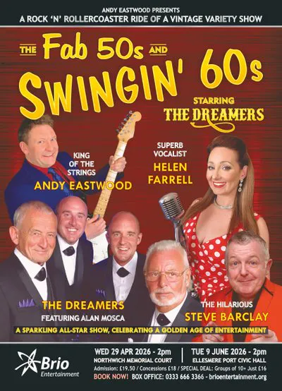 The Dreamers (originally Freddie & The Dreamers) celebrate some of the very greatest hits of the 1950s and 60s in this uplifting afternoon of non-stop nostalgia. Liverpudlian frontman Alan Mosca, who worked alongside the legendary Freddie Garrity, leads the band through sixties chart hits such as I'm Telling You Now, You Were Made For Me and If You Wanna Make A Fool Of Somebody, plus chart-toppers from the Beatles and the inspirational first wave of American rock 'n' rollers.