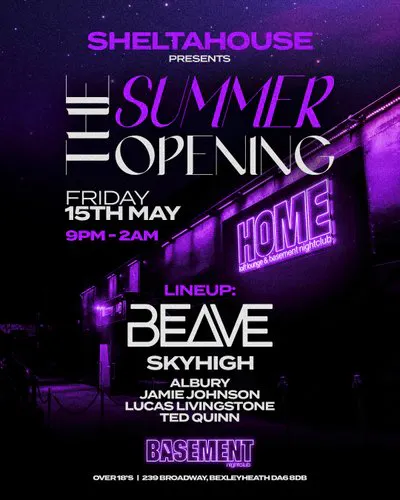 Sheltahouse are kicking Summer off in a brand new venue in the heart of Bexleyheath on Friday 15th May. Expect a night full of vibes & class whilst we party into the new season. Joining us for the night is BEAVE who is a massive name in the scene, best known for his hit song "Just another love song"