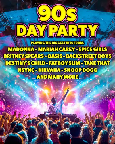 Join us for an unforgettable day filled with the biggest hits of the 90s, featuring chart-topping tracks from your favourite artists of the decade. Whether you’re a 90s music lover or just here for the nostalgia, this party is all about good vibes and even better tunes! 🎊💃✨
