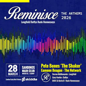 After the dust of our launch night in Sandinos in December, has just settled, The Reminisce lads bring you the much anticipated second act!!! We delve right back into the memory of the mid nineties, to bring the music, the DJs & the ravers, back together, for what promises to be another unforgettable night at Sandinos!!! Two Special Guest DJs.. Prolific UK based Dj/Producer.. Pete (The Shaker) Bones, (who although he was a regular in Derry from the mid to late nineties, hasn't performed in the city in over 25 years), is joined by, Belfast Dj & former resident of The Network, Eamon Beagon!! Alongside Residents & party hosts.. Bill-X... Kevie-B... Gary Harkin & Darren McMenamin... We bring you.. Reminisce! The Anthems!!!! A celebration of the music & culture from iconic North-West venues.. Duffys, The Longfield, & Rude, Hennessys!!!