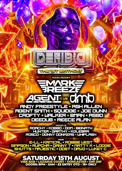 Defib'd returns to Doncaster for its 1st Birthday at Vibe Bar, across two rooms. Headlining act: Mark Breeze