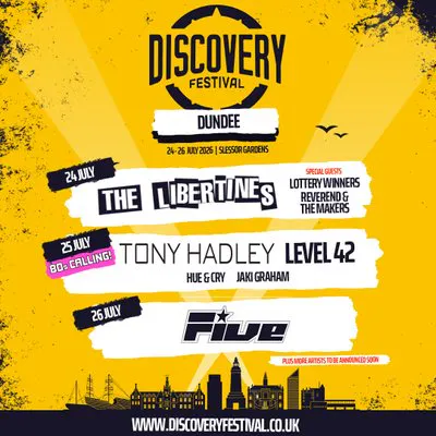 Closing out Discovery Festival 2026 on Sunday 26th July, iconic boy band Five will deliver a high-energy show packed with hits. Formed in 1997, they sold over 20 million records worldwide and achieved 11 consecutive UK Top 10 singles, including three No.1s. Fresh from their Keep On Movin' Tour, marking the first time all five members have performed together in over 25 years, they are set to bring unstoppable energy to Dundee.