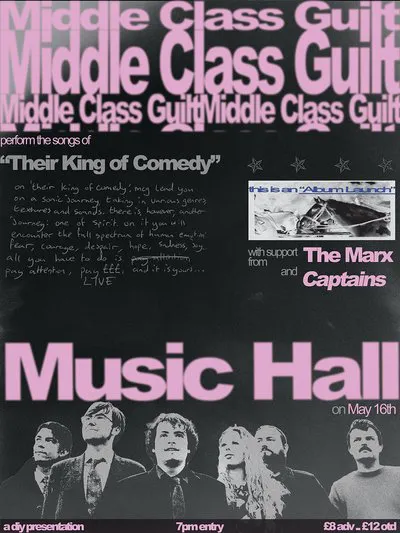 Middle Class Guilt are playing at Music Hall Dundee on May 16th 2026 as part of their UK tour to celebrate the launch of their album 'Their King of Comedy'. Support from The Marx and Captains.