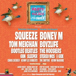Party at the palace together with Favela is BACK! Back to the loch side of Linlithgow Palace, Party at the Palace brings you another weekend of amazing music - featuring Squeeze, Boney M, Tom Meighan, Boyzlife, Bootleg Beatles, The hoosiers, Gun and many many more. Not just music - we have the comedy and breakthrough music stage all topped off with the best street food, drinks, kids activities, market area and much more!