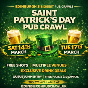 Edinburgh, get ready for a huge St Patrick’s weekend celebration. The SAINT PATRICK’S DAY PUB CRAWL is taking over the city on Saturday 14th March for one massive night out.