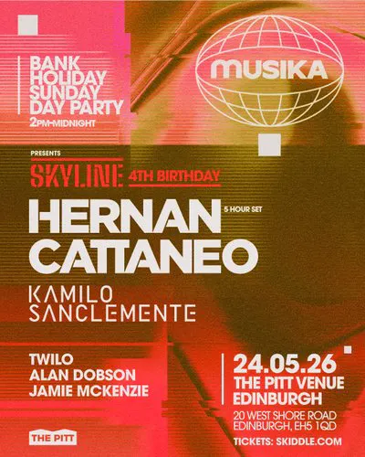 Support comes from both families — Alan Dobson, Jamie McKenzie and Twilo — carrying the Musika x Skyline sound from day into night.