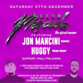 The party is headlined by Jon Mancini (Colours) and Huggy (Burger Queen/Blast) and they will be supported by Paul Finlayson.