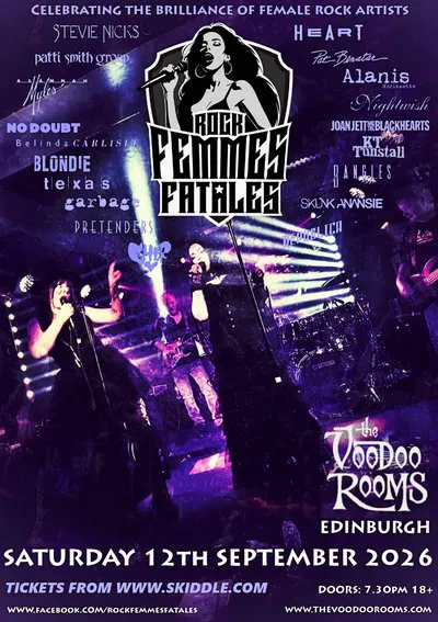 ROCK FEMMES FATALES - Celebrating the Brilliance of Female Rock Artists Through the Ages! - Live at THE VOODOO ROOMS (BALLROOM), EDINBURGH on SATURDAY 12th SEPTEMBER 2026