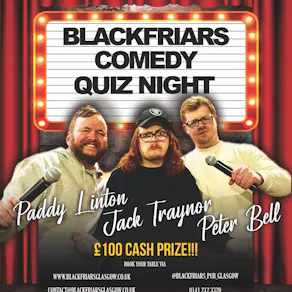 Join us in our iconic pub quiz hosted by Scottish comedy legends Paddy Linton, Jack Traynor, Peter Bell and special guest comedians!