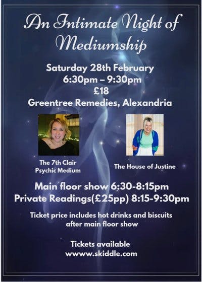 Join Pagan Fellowship Events for an intimate night of mediumship with the 7th Clair Psychic Medium and The house of Justine.