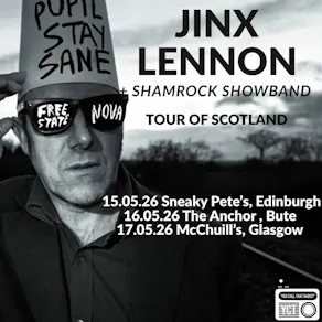 We are buzzing to announce that Irish legend Jinx Lennon is over for a Scottish tour next month. Edinburgh, Bute and Glasgow. He is bringing his Border-Schizo-Punk-Folk music alongside the Shamrock Show Band . I genuinely believe he is one of the most authentic and unpredictable songwriters of our generation, and all three venues will be perfectly suited to his sharp social commentary alongside his melodic hooks, perfect ballads and Electro freak outs . My band had the privilege of touring Ireland with him last year and every night we were treated to a different set from his insanely consistent treasure chest of a back catalogue