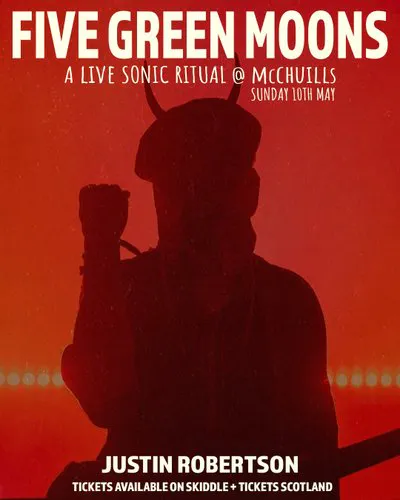 Justin Robertson’s Five Green Moons project- a series of albums and live happenings exploring his bracingly broad musical interests. This time we resonate dubwise, while channelling the twitchy angularity of post-punk and a disturbingly shimmering lysergic folk.