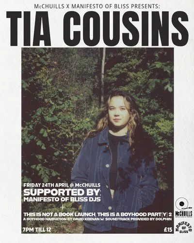 The return leg of Manifesto Of Bliss with Dölphin and Tia Cousins celebrating the release of David Keenan's excellent new novel BOYHOOD