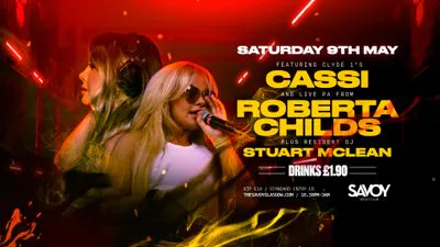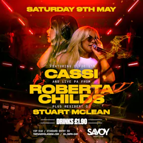 Get ready for a huge night at Savoy Night Club as CASSI takes over with a live PA from ROBERTA CHILDS Plus resident DJ STUART MCLEAN