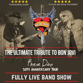 New Jovi provide blistering, energetic and authentic performances of all of Bon Jovi's greatest hits including Livin' on a Prayer, Always, You Give Love A Bad Name, Runaway, Bad Medicine and Bed Of Roses, along with fan favourites like Dry County, These Days, Stick To Your Guns, Never Say Goodbye and many more.