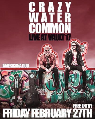 We’ve got Crazy Water Common bringing their stunning Americana sound to Vault 17….soulful harmonies, gritty guitars and seriously good vibes.
