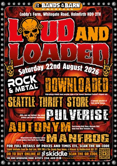 Get ready for an unmissable day of high-octane rock and metal as Bands in the Barn proudly presents LOUD AND LOADED- a full-throttle live music event set in the unique surroundings of Coddy's Farm, Holmfirth.