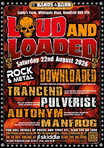 Get ready for an unmissable day of high-octane rock and metal as Bands in the Barn proudly presentsLOUD AND LOADED- a full-throttle live music event set in the unique surroundings of Coddy's Farm, Holmfirth.