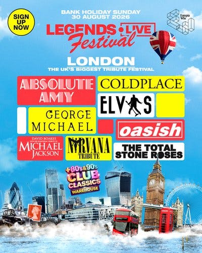 Legends Live Festival brings together 8 of the most in-demand tribute acts in the world for one huge day in London. From stadium pop to Britpop anthems, rock 'n' roll classics to 90s indie, expect hit after hit across stunning open-air and indoor stages.