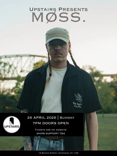MØSS. Brings the launch of his new music to Inverness with his first headline show "upstairs" you can expect a night of unheard music & story telling that will have you in your feels from the get go. With a writers round style support from some of MØSS' favorite local singer songwriters. Its going to be a special night... so get your tickets now!