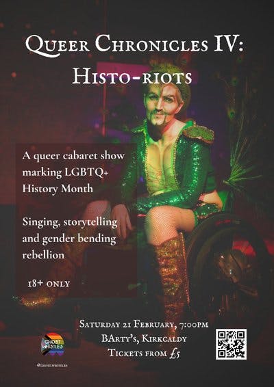 Hosted by Himish Macbeth, a Fife drag king in it to spread queer disabled joy and anarchy. Complete with his dragged up mobility aids, Himish has entertained audiences from Aberdeen to Auckland, and is ‘fast becoming one of the UK’s most well-known disabled drag kings’ [Snack magazine].