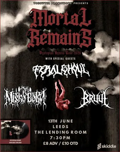 Mortal Remains descend on Leeds as part of their "Dystopian Hymns" album launch tour alongside Fife death metallers Feral Ghoul. Support comes from Black Metal virtuosos Misko Boba and Bruul.