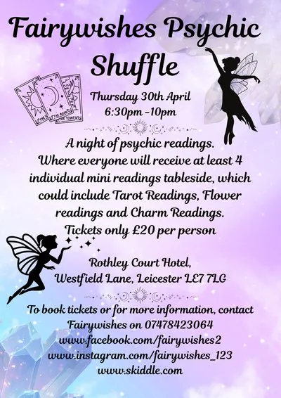 An evening of tableside readings where everyone will receive at least 4 different readings by 4 different psychics , all using various tools to read with, this could include but not exclusively Tarot Cards, oracle cards, charm reading or flower readings to name a few.