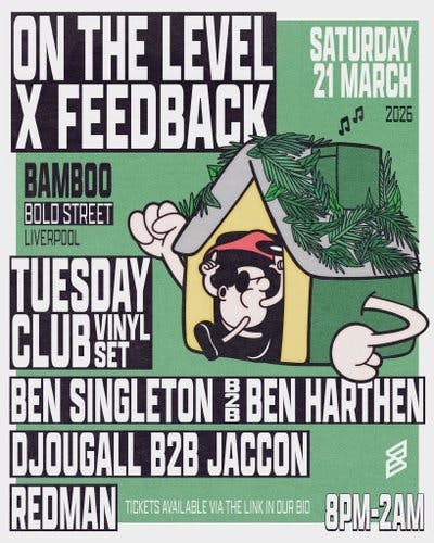 on the 21st of March, Feedback and On The Level come together to bring the party to Bamboo Brunch and Cocktails on Bold Street, expect a signature soulful sound of On The Level, amalgamated with the deep and eclectic sound of Feedback, providing a perfect blend of deep and blissful music for the whole of the night!