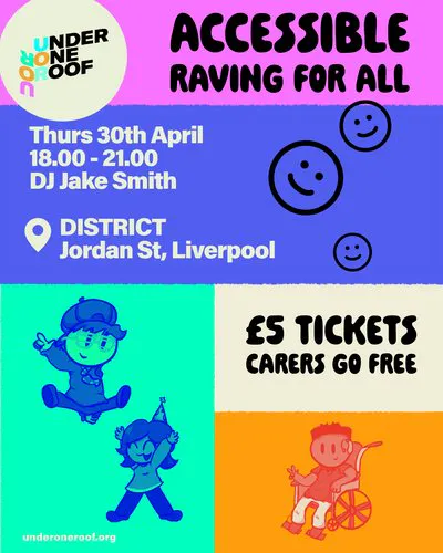We are very excited to be finally returning to Liverpool after a long hiatus, and coming back to District. The venue is wheelchair accessible. Our events are mostly dance music, and there are some flashing lights (no strobes).