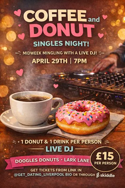 Join us at Doogles Donuts on Lark Lane for an over 30s midweek singles mingle with a live DJ, including one hot drink and donut per person.