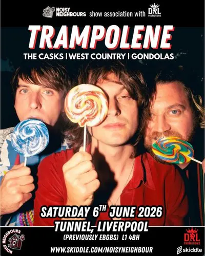 Trampolene formed in Swansea, where a group of school friends began crafting a sound that would take them from local venues to stages across the UK and Europe. Relocating to London, they honed a unique blend of raw energy and lyrical depth, resulting in two Number 1 albums on the Official Independent Chart.