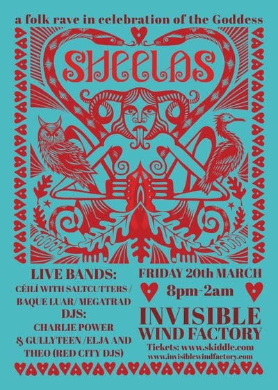 Sheela is a representation of our ancient mother Goddess, a symbol of wild feminine power and the cycles of life. On the 20th March, the spring equinox, we will gather for a night of wild dancing in her honour. The suppression of the Goddess has taken place for long enough- it’s time for her to rise.