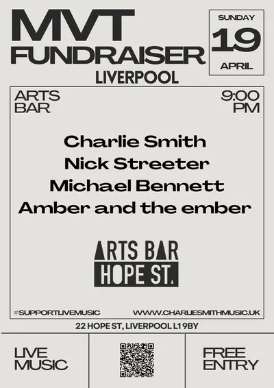 Join us on Sunday, 19th April, for a grassroots music special at Liverpool Arts Bar, raising money for MVT