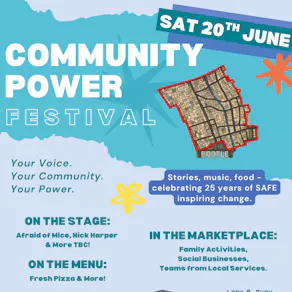 We’re really excited to invite you to join us on Saturday 20th June 2026 for our Community Power Festival, part of which will be a celebration of 25 years of SAFE Regeneration and everything we’ve built together with our community, partners, and friends.