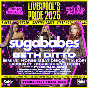 Featuring Sugababes, Beth Ditto, Tia Kofi and more, alongside local stars Tyler DaClaire, Pam Sandwich & Debbie Darling, plus an Opening Ceremony featuring dozens of Liverpool LGBTQ+ community performers.