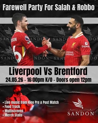 Join us on May 24th at The Sandon for an emotional and unforgettable send-off to two modern-day legends — Mohamed Salah and Andrew Robertson.