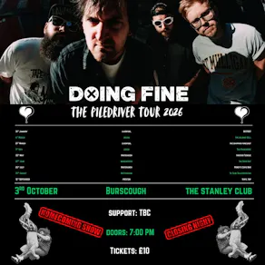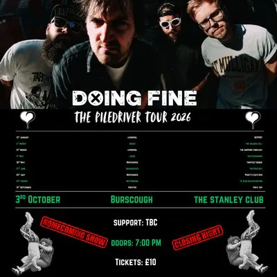Burscough's own Doing Fine are rounding off their 2026 UK tour with a show in their hometown's biggest venue. Expect an epic set filled with their biggest hits, their deepest cuts, and new songs that they've written on the road through the course of the year.