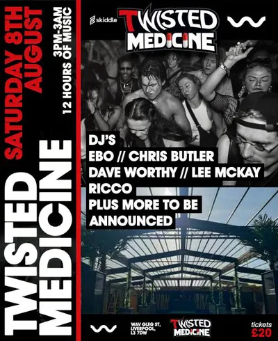 Two of Liverpool's favourite club nights, Twisted Tunnels & Music Medicine, join forces for one unforgetable 12 Hour party - a journey through 40 years of house and dance music. Our goal is to bring you quality events at affordable prices.Two of Liverpool's favourite club nights, Twisted Tunnels & Music Medicine, join forces for one unforgettable party - a journey through 40 years of house and dance music. Our goal is to bring you quality events at affordable prices.