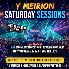 Get ready for another massive night at Y Meirion! This Saturday, May 2nd, we’re buzzing to welcome our special guest, Bob Vault, to the decks for Saturday Sessions.