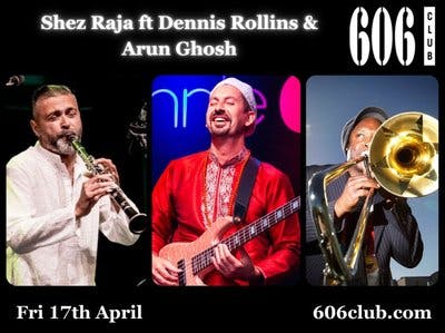 For this unique show Shez has invited two incredible special guests – both true legends of their instruments. Arun Ghosh, one of the UK’s most distinctive and expressive clarinettists, is renowned for his genre-defying blend of jazz, Indian classical music and raw improvisational energy. A fearless musical explorer, Ghosh brings a bold and highly personal voice to the stage. Joining him is Dennis Rollins, the electrifying trombone innovator and multi-award-winning bandleader, famed for his explosive energy, soulful tone and cutting-edge approach to groove.