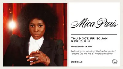 Mica Paris is back on the Boisdale stage, ready to deliver a night of soul-stirring vocals, timeless hits, and pure musical magic. After a string of sold-out shows, she returns with her powerhouse voice to perform classics like "My One Temptation", "Breathe Life Into Me"and "Where Is The Love".