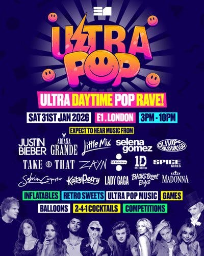 ULTRA POP is all about good vibes, good people and good music - expect a floor full of pop lovers shaking it from start to finish.