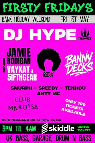 Firsty Fridays - DJ HYPE - Bank Holiday Opener