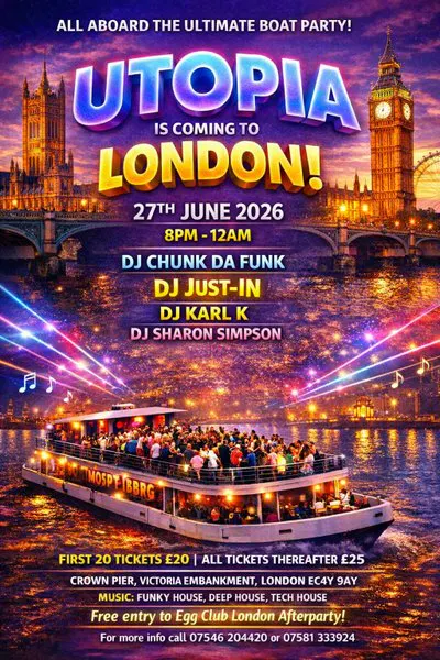 MUSIC: FUNKY HOUSE, DEEP HOUSE, TECH HOUSE Free entry to Egg Club London Afterparty!